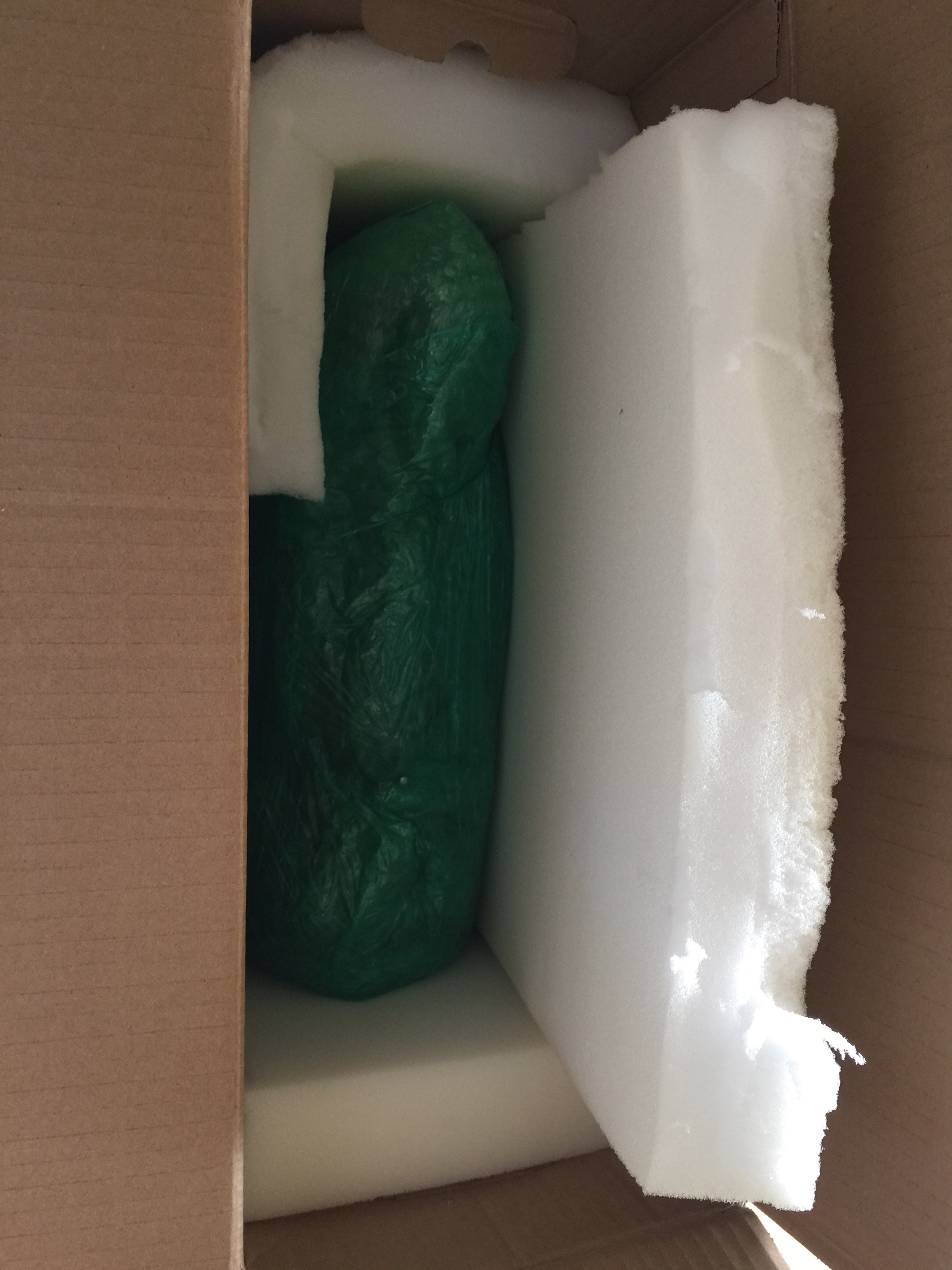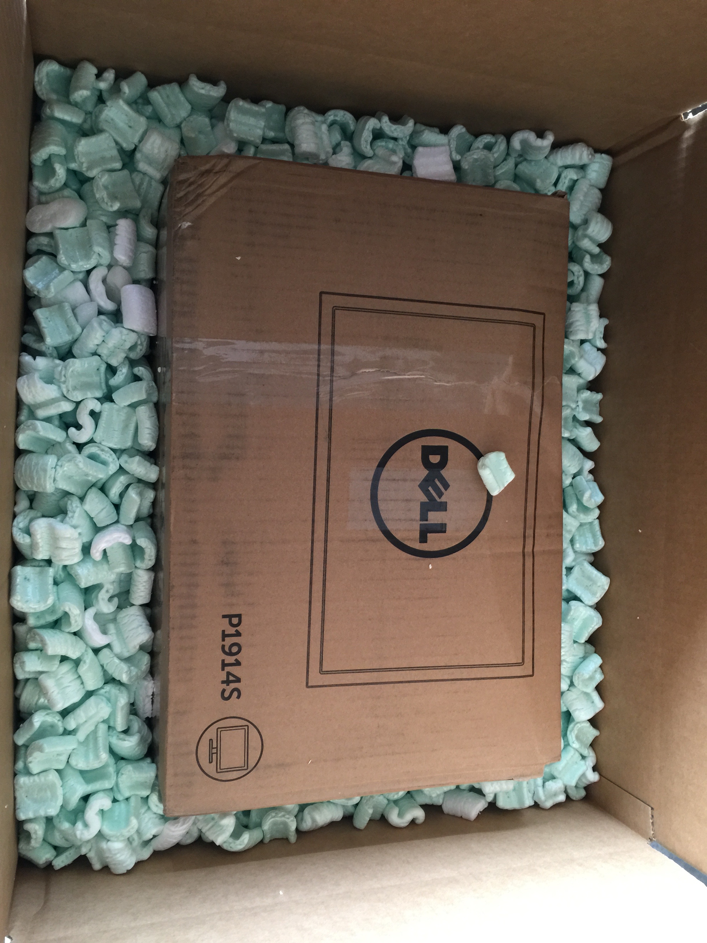 5. Finally more peanuts are put on top with a extra layer of cardboard and the box is sealed with heavy duty shipping tape.